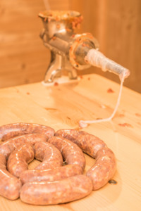 Takto připravená masová směs se plní do vepřových střev velmi dobře vypraných v octové vodě.