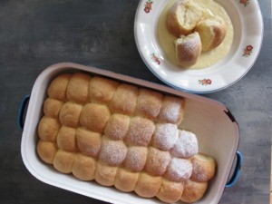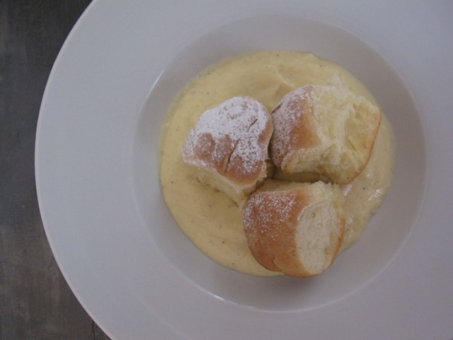 Tento skvělý vanilkový krém podáváme s teplými buchtičkami s křupavou kůrčičkou.