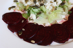 Řepu zbavíme slupky a nakrájíme na co nejtenčí plátky.