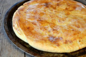 Chačapuri potřeme žloutkem rozšlehaný s mlékem. Pořádně. A šup do trouby, kterou jsme pořádně předehřáli na 250 °C. Pečeme krátkých deset minut, dozlatova. Ihned po vytažení z trouby potřeme kusem másla. Pěkně poctivě! Necháme odpočinout a můžeme krájet a krmit rodinu.