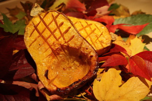 Dýni podélně rozkrojíme , nařízneme a potřeme olivovým olejem. Posolíme a můžeme použít různé bylinky nebo koření na ochucení. U nás je velmi oblíbený tymián, muškátový oříšek a v lednici nesmí chybět ani varianta s chilli.