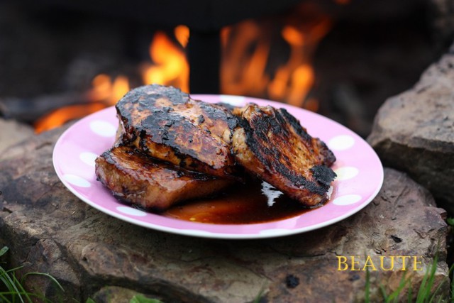 Po pořádném odpočinku maso vyndáme a šupneme na gril. Při grilováni potíráme zbytky marinády.