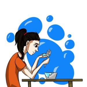 22.00 Dokončuju zdobení. Vyhazuju zbytek modré hmoty. Netrefuju koš. Všechno je modré. Stůl, podlaha.pes...