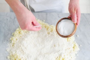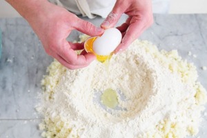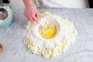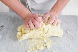 S těstem byste neměli pracovat dlouho, nelekejte se toho, že těsto bude stále trochu lepit. Kdyby bylo husté a nelepilo, hotové noky by byly příliš tuhé a ne nadýchané, jak je chceme.