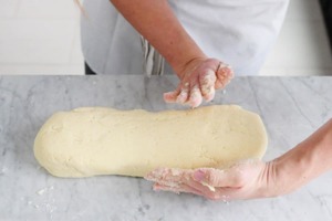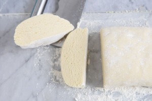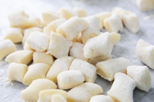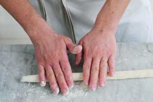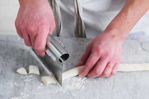 Z hotového těsta ihned tvořte noky, bramborové těsto totiž časem začne řídnout. Na pomoučené ploše uválejte hada o průměru asi 1,5 až 2 cm.