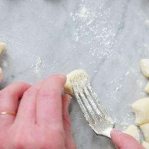 Vidličkou lehce zmáčkněte a otiskněte do každého noku tvar vidličky.