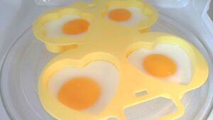 Na trhu však už dnes existuje množství vychytávek – mezi nimi jsou také nádoby na vaření vajec v mikrovlnce. Dostupné jsou formy na omelety, volská oka i celá vařená vejce. Hlavně nezapomeňte nastavit nižší výkon mikrovlnky, doporučuje se max. 70 % výkonu.