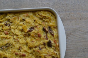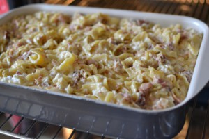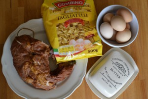 Nepotřebujete mnoho surovin, o to lépe je vybírejte. Použijte kvalitní těstoviny – já kromě originálních italských používám těstoviny z Lidlu, které jsou velice kvalitní za výbornou cenu. Ideální jsou fleky, čtverečky nebo tagliatelle. Když je nouze, zapéct se dají třeba i „vrtule“ nebo motýlci. Ale už to není ono.