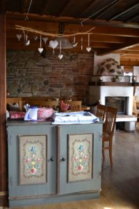 My jsme na místo dorazili autem. Jízda byla velice dobrodružná, protože se jelo cestou, která byla spíše polní než pro auta – prudké zákruty, úzká cesta a přes cestu se často válely krávy :-) Doporučila bych vám dojít do chaty pěšky, protože pěší vycházky jsou tady opravdu kouzelné. Navíc vám po cestě vyhládne a vy si tak užijete všechny pochoutky, které zde nabízí hodně horských almů.