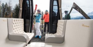 Každý je VIP! Ve spolupráci s firmou Moessmer z Brunecku zkrášlili gondolu kabinkové lanovky Alpen Connecting a změnili ji na VIP-kabinu: potahy na sezení a závěsy jsou z vybraného materiálu a nechybí ani lednička na sekt. Jízdu ve VIP gondole si musí host objednat dopředu. Zajímavý zážitek, co říkáte?