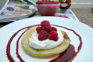 Na dochucení si připravte jednu vaničku jemného tvarohu a tu smíchejte s vanilkovým cukrem, vyšlehejte a podávejte spolu s lívanci, které si na talíři ještě dozdobte malinami a datlovým sirupem.