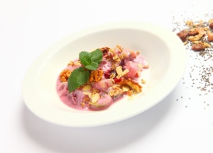 Chia semínka necháme nabobtnat v jogurtu asi 5 minut. Připravíme si mix ovoce, nejlépe sezónní, nebo které máme rádi. Výborné jsou borůvky, jahody, ostružiny, maliny, banán, jablko. Ovoce omyjeme a nakrájíme na menší kousky. Mix ovoce a jogurt smícháme ve větší misce dohromady, přidáme müsli a ořechy. Dle chuti můžeme přidat med či mletou skořici. Lehký letní salát či vydatnou snídani máme hotovou. Před podáváním ozdobíme lístkem máty či nasekanou mátou.