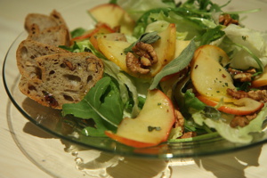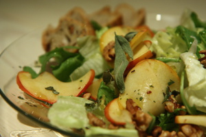 Salát s jablky, ořechy a křupavými lístky šalvěje
