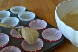 Těsto nalijeme do papírových košíčků. Na tento recept jsem použila maličké košíčky, aby byly výsledné dezerty roztomilé :-)