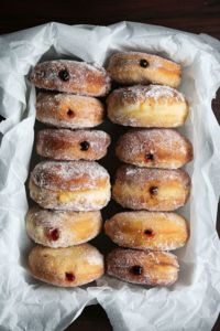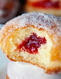 Do zdobícího sáčku s úzkou špičkou si naplňte nepříliš hustý oblíbený džem. Tím naplňte koblihy. Ještě můžete lehce pocukrovat.