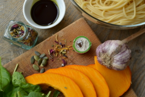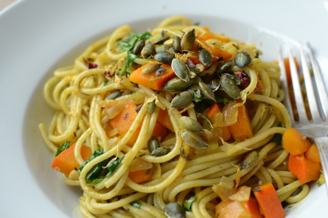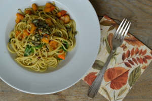 Špagety s dýní a špenátem