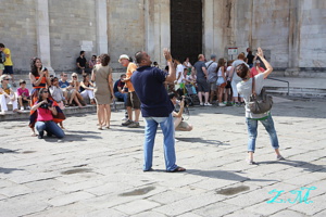 Chvilku jsme poseděli na schodech náměstí a nasávali poklidnou a téměř turistů prostou atmosféru městečka , kterou podkresloval stařík hrající na rohu.