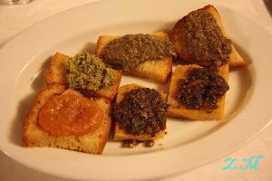 Crostini s různými druhy "pomazánek"