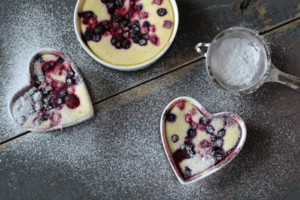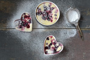 Tvarohovou směs naplňte do zapékacích mističek různých tvarů a velikostí. Neplňte až po okraj a nahoru naskládejte vybrané ovoce.