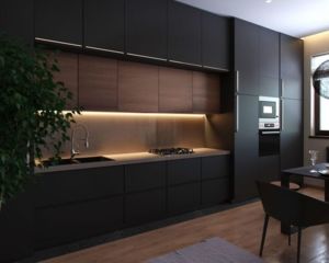 Velice praktické jsou LED pásky, umístěné na spodní část horních kuchyňských skříněk.