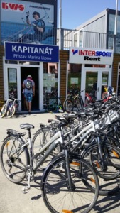 Pěšky toho za den moc nestihneme a neuvidíme, přejíždět zase z místa na místo autem se nám taky nechce, objevovat místní krásy ze sedla kola je tedy ideální varianta. Na kole oba jezdíme, ale nejsme žádní proficyklisté. Jsme uprostřed prázdnin a předpověď na víkend je více než příznivá, slibují tropy, což na koupání a výlety je super, ale chce se nám pařit někde na kole??? Naštěstí jsme objevili půjčovnu sportovního vybaveni Intersport Rent Lipno – Kapitanát. Tato půjčovna nabízí mimo jiné ideální dopravní prostředek pro naše účely – elektrokolo, je rozhodnuto!