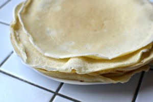 Připravíme si kvalitní pánev s nepřilnavým povrchem, kterou jen lehce vymázneme trochou oleje. Na rozpálené pánvi smažíme tenké palačinky.