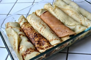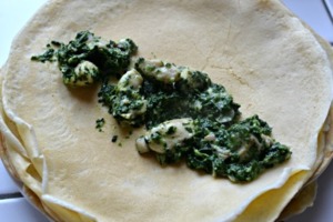Náplň dáme doprostřed palačinky a zamotáme.