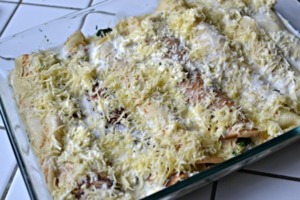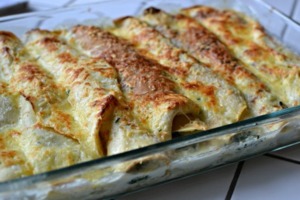Sýrovou směsí zalijeme palačinky.